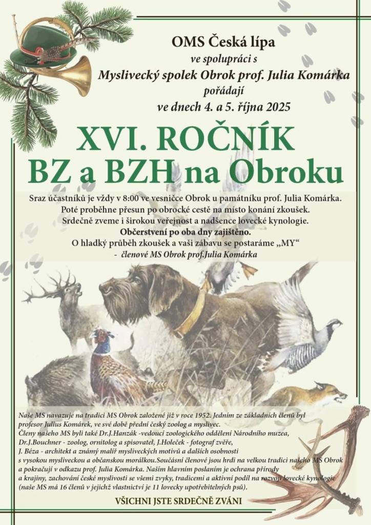 4. a 5.10. 2025 XVI. ročník BARVÁŘSKÝCH ZKOUŠEK a BARVÁŘSKÝCH ZKOUŠEK HONIČů - Lovecká kynologie